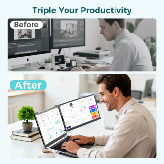 Tlscon launches the 2025 upgraded version of its ultra-thin and light laptop extender screen. The 14inch laptop screen extender monitor portable is an astonishing 0.17 inches thick—thinner than your phone. Weighing just 0.31 pounds—30% lighter than before, it's as light as a bottle of water and easily fits into a backpack. This travel laptop monitor boasts the thinnest and lightest design of its kind on the market. It's perfect for remote workers and home offices, allowing for effortless multitasking wherever you go.