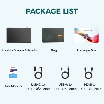 - 【Plug and Play, Simple Connection】This portable monitor for laptops comes with all the necessary cables for a seamless and hassle-free setup; If your laptop has a full-function Type-C port (labeled as Thunderbolt 3.0/4.0, supporting DP or video output), you can quickly connect with just a USB-C to USB-C cable; if your laptop does not have a full-function Type-C port, you can easily use both USB-A cable and HDMI cable to connect at the same time; if your extender screen has any display problems, please contact our after-sales team to solve it for you.